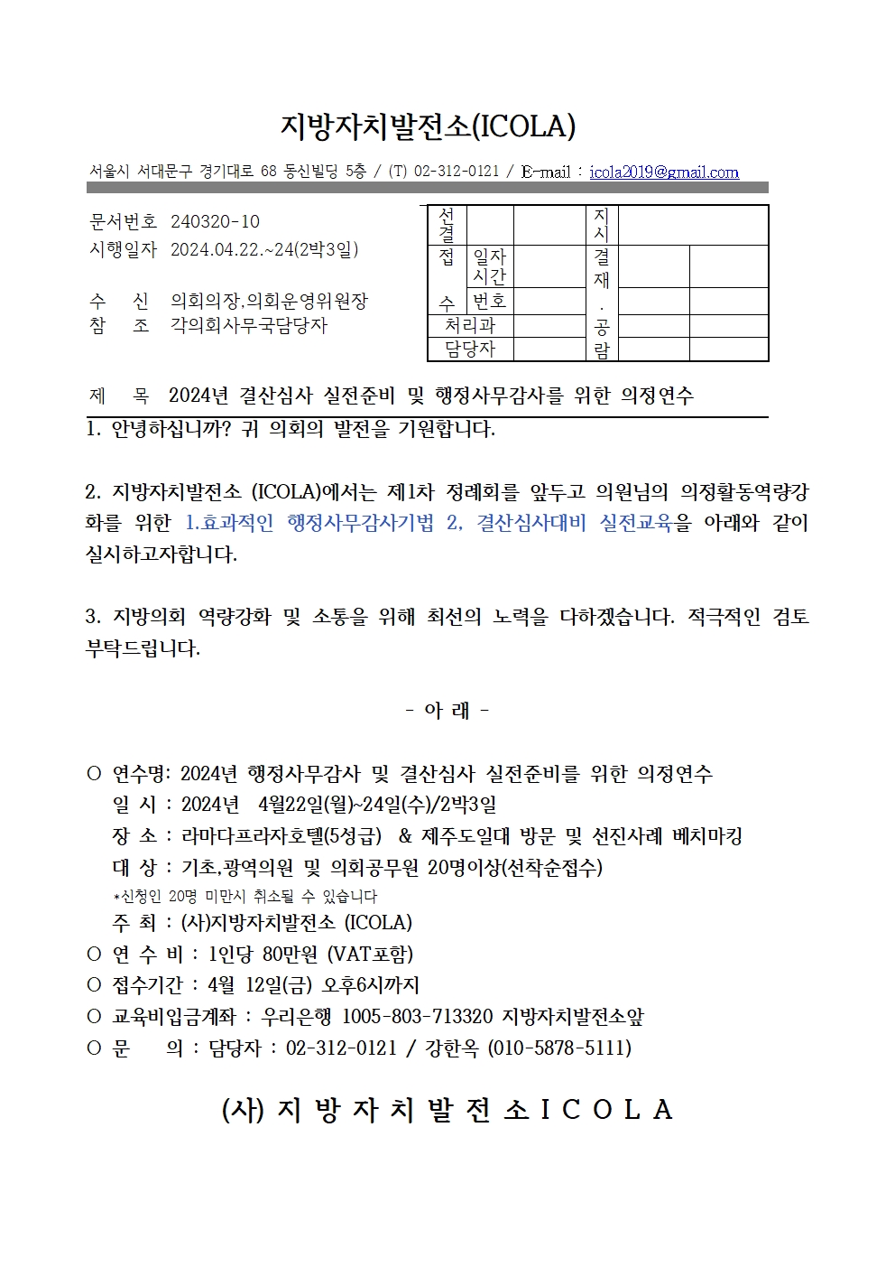 ▶ 총선 끝나고 제주로 연수 가자! icola가 준비한 지방의원을 위한 필수 교육◀
