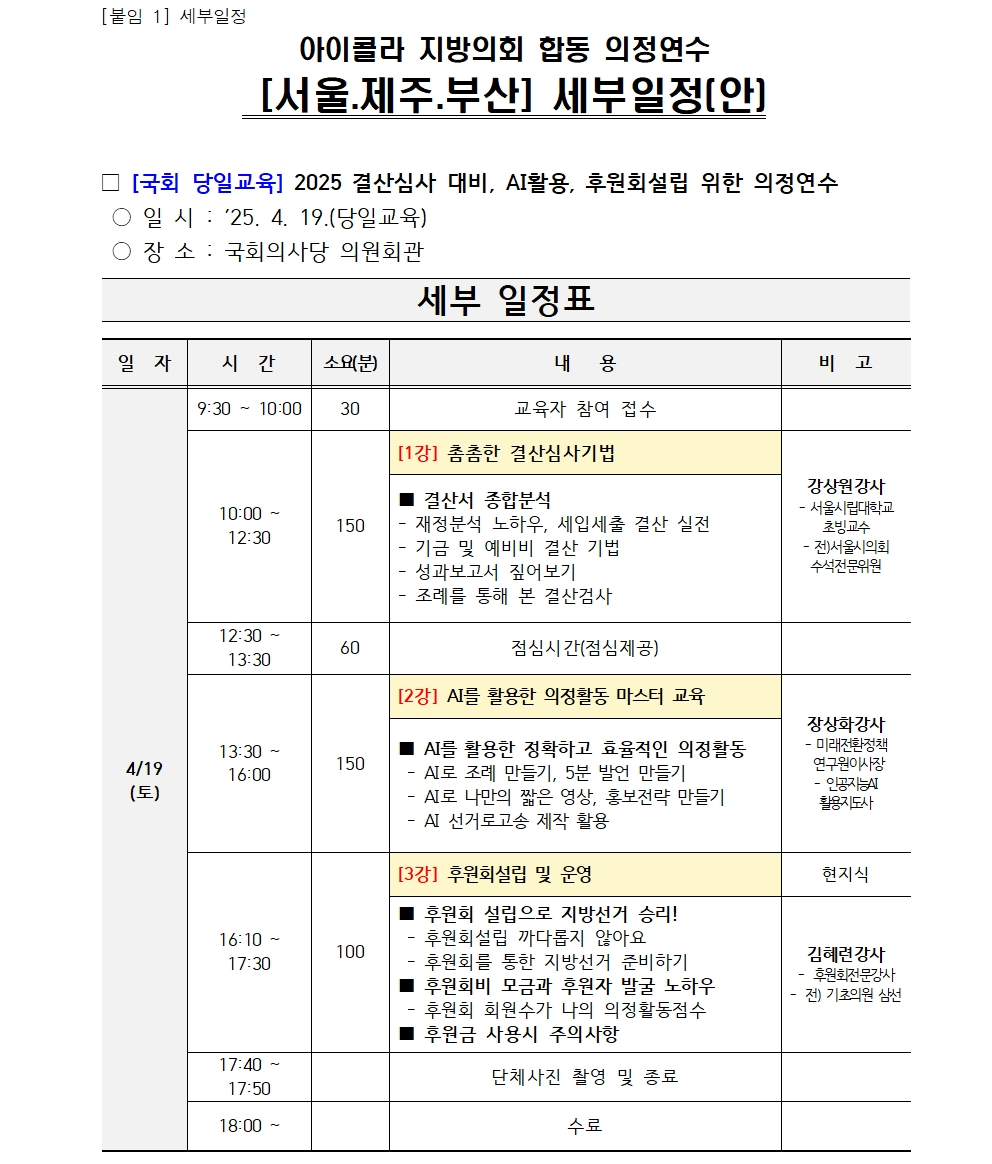 2025 상반기 지방의회 합동 의정연수 접수중