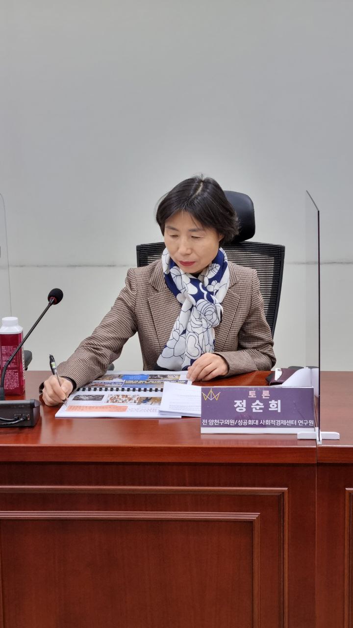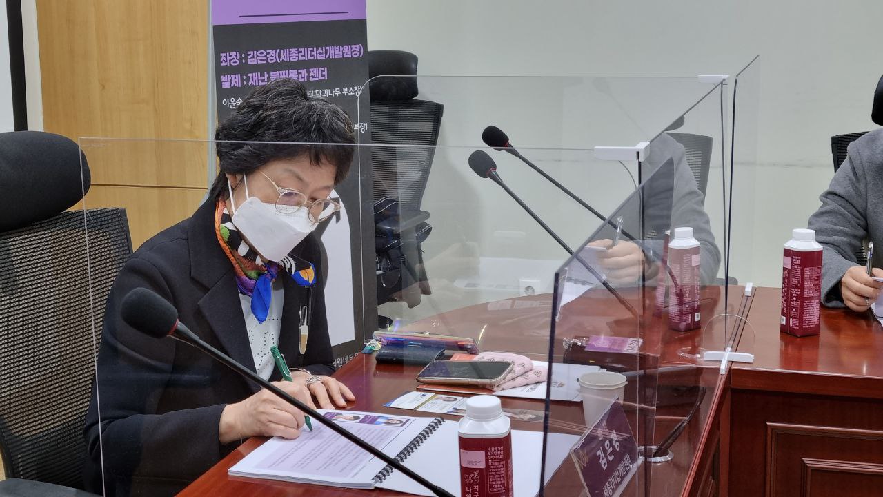 토론회 좌장은 김은경(세종리더십개발원장)교수가 맡았고, 여성환경연대 부설 에코페미니즘연구센터 달과 나무의 이윤숙 부소장이 재난 불평등과 젠더 주제의 발제를 했다. 김동식 한국여성정책연구원 젠더폭력연구본부장, 청년 이하린양과 정순희 전 양천구의원은 토론자로 참석했다.