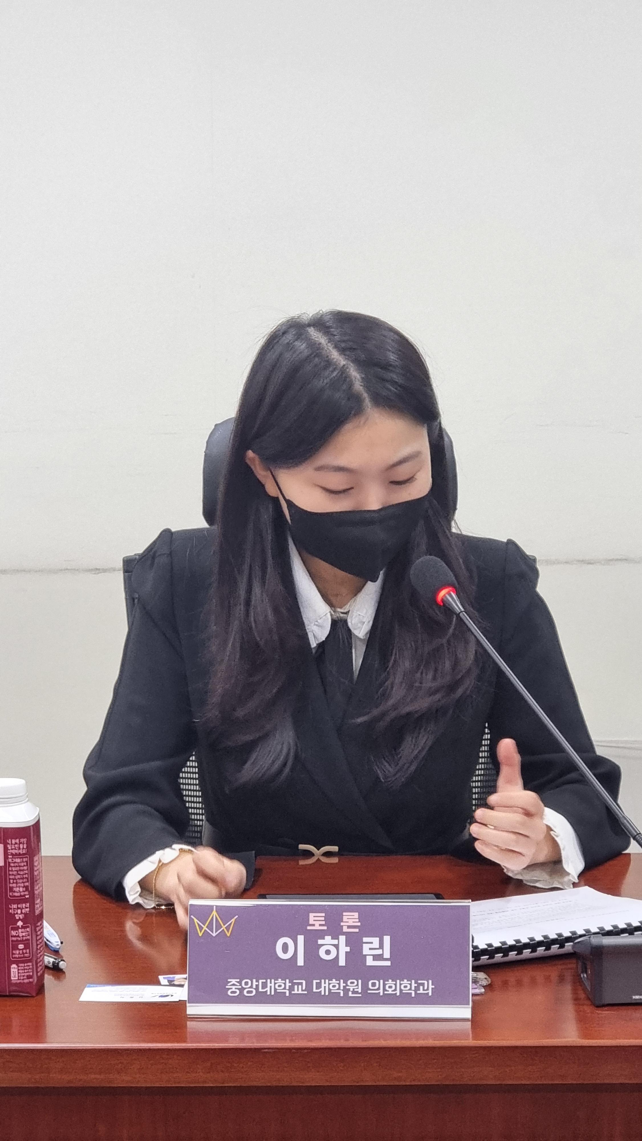 현재 20~30대는 한국 역사상 가장 큰 인명피해를 낸 세월호참사와 이태원참사를 겪으며 직·간접적으로 자신의 친구와 선후배를 잃는 특수한 경험을 했다며 말문을 연 이하린양의 토론은 참가자들의 안타까움을 더했다. 한편 정순희 전 의원은 지방의원의 경험을 바탕으로 재난 및 안전관리 기본법과 자치단체의 조례에 성별분리통계를 의무화 하고, 재난취약자에 여성이 포함되어야 한다고 당부했다.