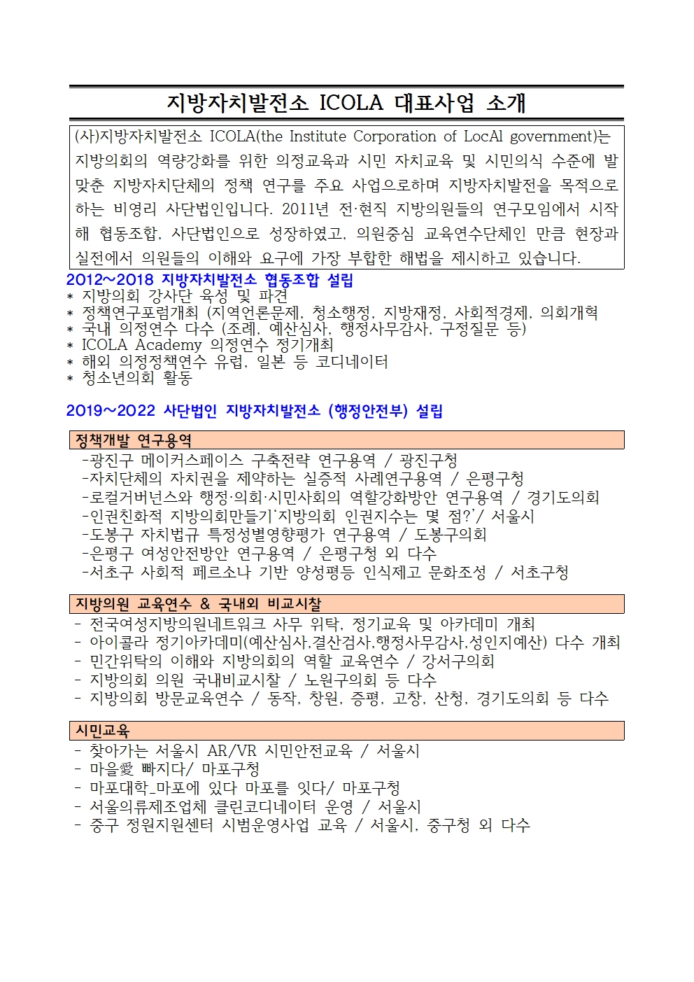 (사)지방자치발전소 (ICOLA)에서는 의회 상반기 정례회를 앞두고 정기아카데미를 개최합니다.