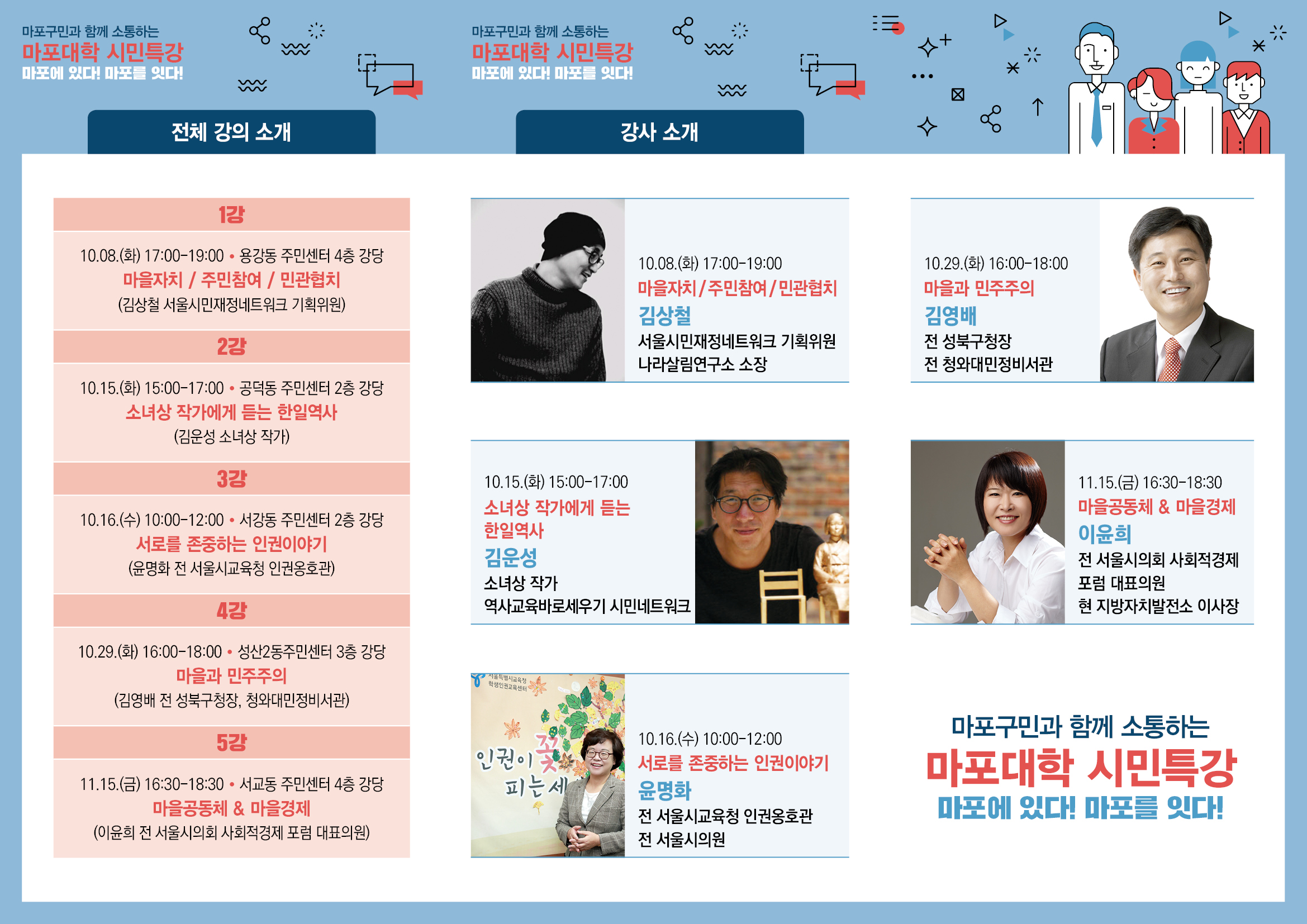 시민&청소년교육성숙한 시민의식과 참여민주주의 교육 시민대학, 마을학교 등청소년 미래시민교육, 혁신교육 등주민자치교육, 시민참여예산과 자치역량 강화
