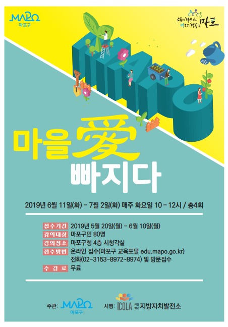 11월 15일 금요일 서교동 주민센터 강당에서 '마을공동체 & 마을경제' 라는 주제로, 마포대학 하반기 시민특강 마지막 강의가 있었습니다. 하반기 마지막 교육인만큼 마포 유동균 구청장께서도 직접 참석해주셔 자리를 빛내주셨습니다. 비록 길지 않은 시간이었지만 마포구민들과 소통하는 소중한 시간을 가졌습니다. 이 날은 마포의 망원1동, 망원2동, 서교동 주민 70명이나 되는 많은 인원이 참석하여 강의를 듣고 질의응답을 가졌으며, 강의가 끝난 뒤 강의평가에서도 아주 좋은 평가를 받았습니다. 이윤희(지방자치발전소 이사장) 강사를 통해 마포 지역자치에 대한 구민들에 대한 긍정적인 인식전환과 마을공동체의 중요성을 배우는 유익한 시간이었습니다.
